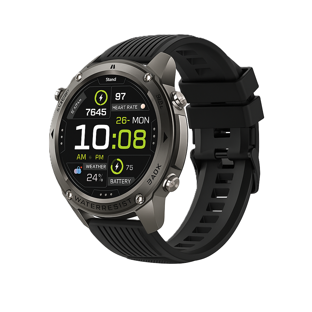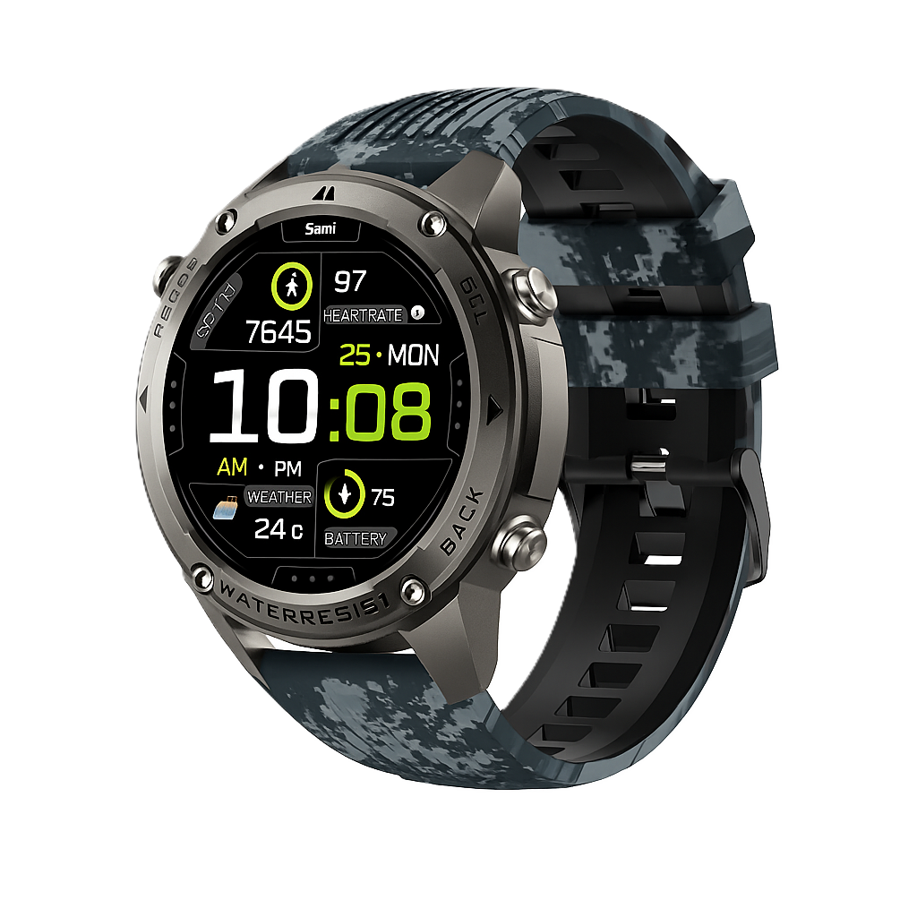 El Sami GPS 5 Smartwatch está diseñado para aventureros y deportistas que buscan un reloj resistente, con GPS integrado, medición de salud avanzada y una pantalla AMOLED de alta definición. Combina potencia, precisión y estilo en cualquier entorno.