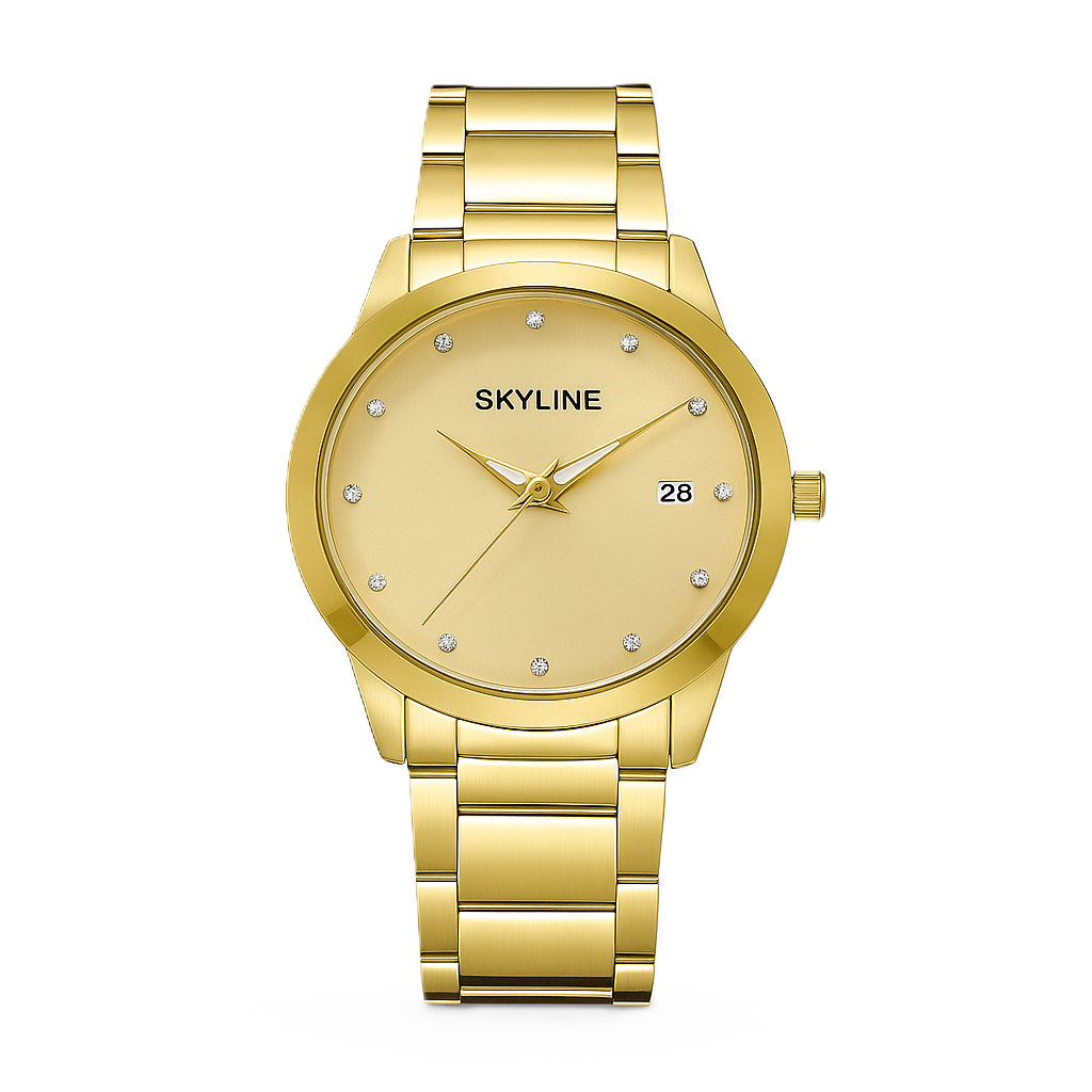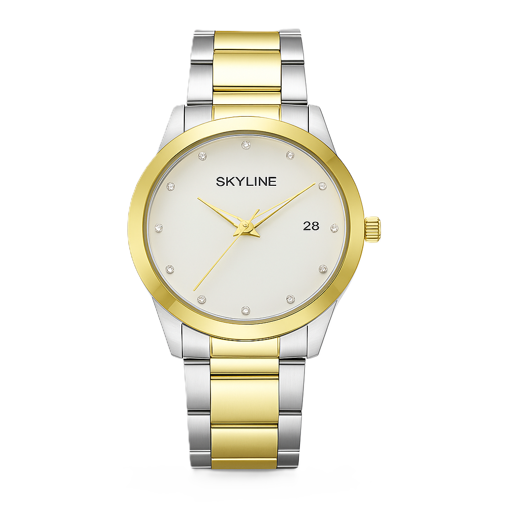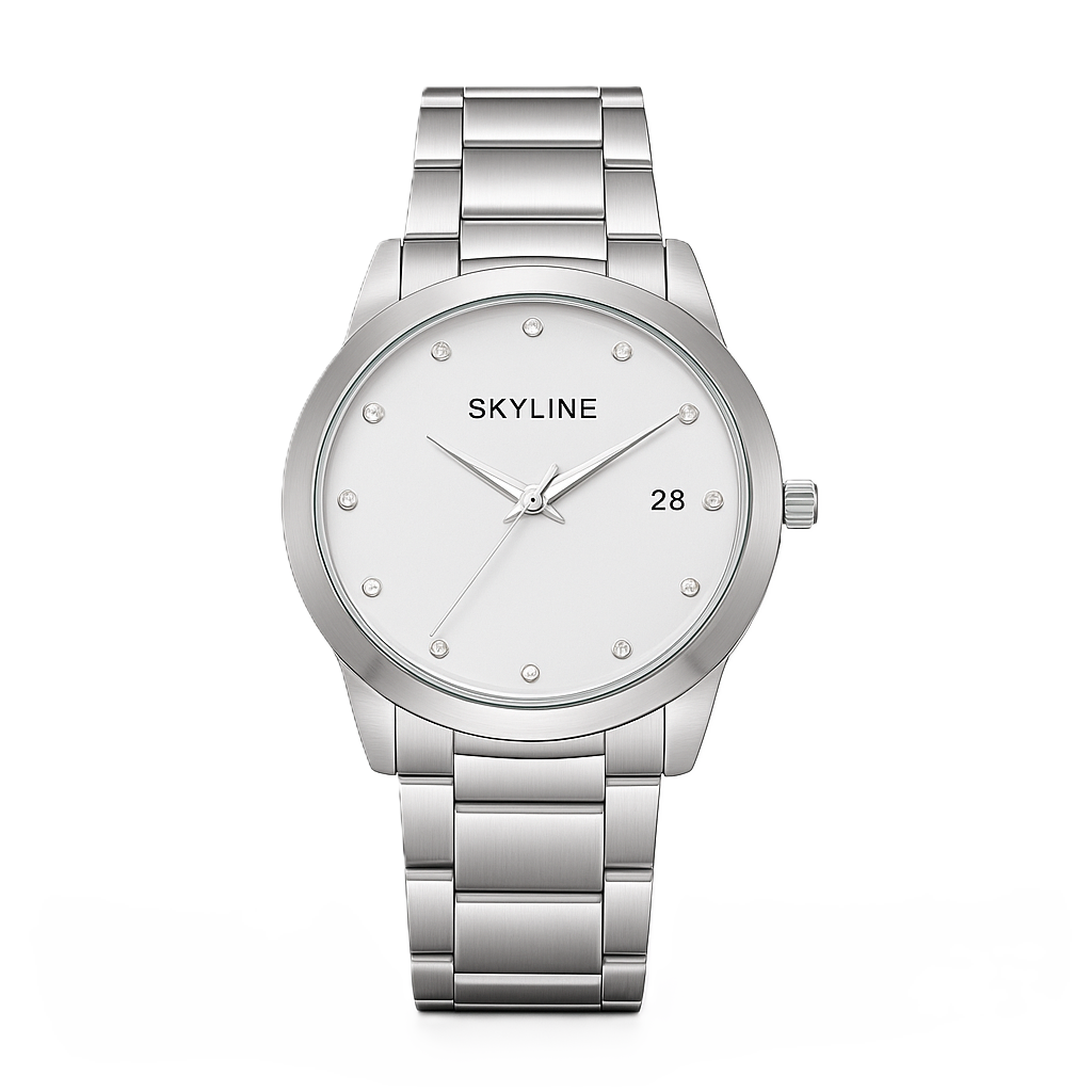 Reloj de acero inoxidable y calendario.